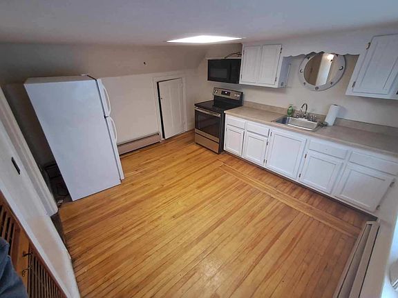 Spacious 2nd and 3rd story apartment in a great neighborhood. Off street parking lot, newly paved. Private rear courtyard. Front and back entrances. On site Laundry. Lockable Storage Unit included. Owner covers Heat, Water, Sewer, Trash, Plowing, and Mowing. Owner pays for Heat, Trash removal, Plowing, Mowing. Tenant pays electricity. Cats and small dogs are considered. Monthly pet fees do apply.