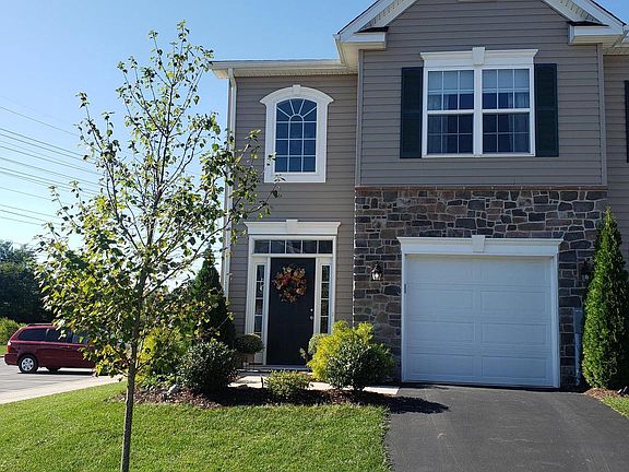 Immaculate end unit townhome located in Spring Mills, conveniently located near I-81. Colonial charm with open concept dining/living area, 2 story foyer and 9 foot ceilings on main level. Kitchen is equipped with granite counters, double bowl under mount sink, stainless appliances and a peninsula island with bar overhang. Plenty of storage space with 42 inch cabinets, counter space and pantry. Laundry is located on upper bedroom level. Primary bedroom has tray ceiling with attached bathroom that has double vanity, 3' glass door shower and soaking tub. Front entry garage, patio located of rear of house. Community pool, tennis courts, playgrounds and walking trails. Spring Mills school district.
