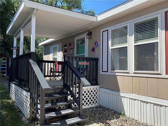 NEW PAINT, NEW PRICE!!! Want your own private oasis? This affordable, well kept home has it all. Walkout from your master suite onto the private back porch backed up to a wooded lot or choose from any of the other 2 decks with shade. Updated tile flooring throughout and upgraded bathrooms with tile and granite make this home a must see! The kitchen boasts newer stainless steel appliances and a bar hangover for extra seating options. All 3 bedrooms are completed with large walk-in closets. Washer and dryer stay to make this home completely turn-key and move in ready! Buyer must be approved by Windsor Estates if remaining on the lot. Lot rent is $377/month.