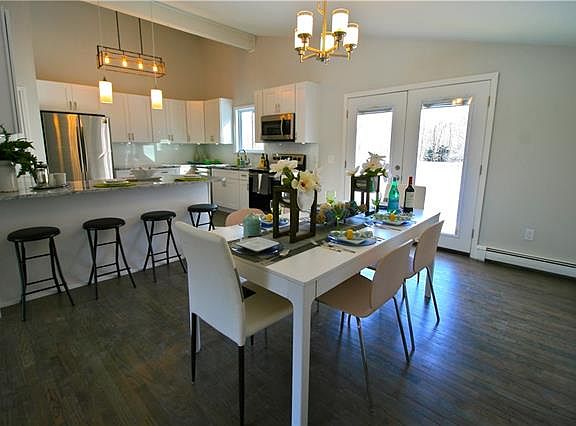 Start the new year off right in this extensively renovated contemporary raised ranch on 1.2 acres of flat land. This home has had a complete overhaul which includes new vinyl siding, roof, windows, doors, kitchen, baths, flooring, lighting, deck, electrical, plumbing, insulation, boiler, oil tank, hot water heater, etc. The upper level has vaulted ceilings and is comprised of a living room, formal dining room with doors out to a brand new deck, totally new kitchen with white Shaker-style cabinets, granite countertops and stainless steel appliances, plus a Master Bedroom with an ensuite bath and two additional family bedrooms with a hall bath. On the lower level you will find a large legally finished family room with new custom sliders, laundry, rough plumbing for a third bath, utilities and a spacious 2-car garage. This home is in a quiet family-friendly residential neighborhood with evident pride of ownership - must see!