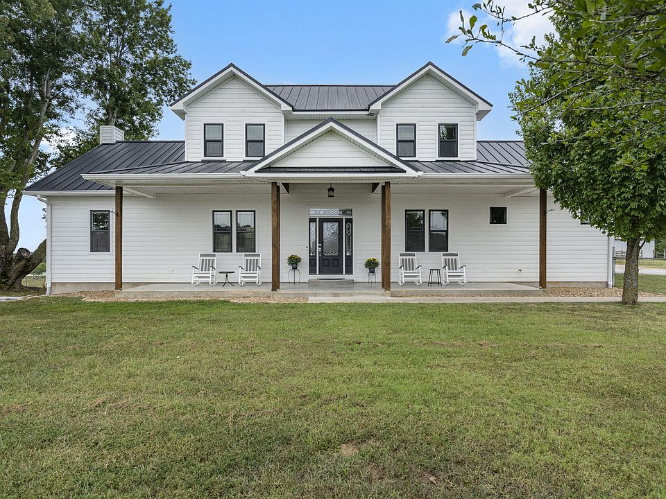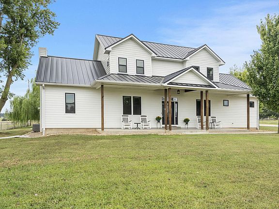 Gorgeous modern farmhouse on nearly 5 acres, just 5 miles north of Buffalo! Originally built in 1940, this home was completely taken down to the studs and fully renovated in 2017. From the moment you step inside, you'll be wowed by the thoughtful design and stunning details throughout.Favorites include the large covered front porch w/stunning views, 5'' red oak hardwood floors, striking hardwood + metal staircase, high ceilings, and foam insulation (including between upstairs floors for minimal noise). The high-efficiency HVAC system keeps comfort in every season.The show-stopping kitchen boasts a massive island with seating for four, gas range, appliance garage, black stainless appliances, and dining space for gatherings. Step onto the covered back patio, perfect for grilling and enjoying the peaceful views of the fenced backyard and fields.The main floor offers a beautiful master suite with vaulted ceilings, dual walk-in closets, and a custom walk-in shower with dual heads. Also on the main level: a home office, guest bedroom, bath, and oversized laundry area.Upstairs features a second living space, a reading nook with custom built-in shelving, plus three spacious bedrooms, all with walk-in closets--and a touch of the original farmhouse charm.The oversized climate-controlled garage (32'x30') offers plenty of room for vehicles and projects. Inside, don't miss the clever custom doggy area tucked under the stairs--complete with lighting and dual entrances, it's the perfect cozy spot for your furry friends!This home truly combines timeless farmhouse character with modern comfort--ready for you to enjoy!
