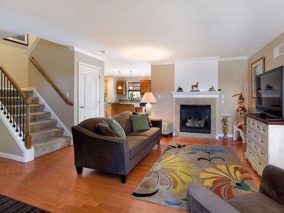 Immaculate 7-year-old End Unit in Brookview Estates w/ h/w floors, crown molding, upgraded lighting, gas heat, gas fp w/ mantle, open concept kitchen w/ upgraded cabinetry, recessed lighting, & brkfst bar, a sunny dining area w/ sliders leading to deck/paver patio combo. Upstairs has a two story stairway, upstairs laundry, & big master suite w/ walk-in closet & master bath w/ stall shower & soaking tub. Plus a 2-car garage & low HOA fees.