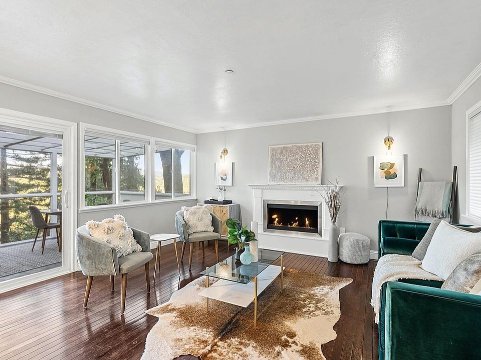 This beautifully updated Fairfax home offers the serenity of the hills just minutes to vibrant downtown Fairfax. Features of this 2 bed 1 bath home include hardwood floors, a sleek chef's kitchen with pantry, marble counters and stainless-steel appliances opening to the living room with bio ethanol smokeless fireplace. The living room connects to an enclosed deck offering amazing views + dining room + great work from home option. The primary bedroom opens onto a spacious outdoor view deck and is great for morning coffee, relaxing evenings, and BBQ's. Plus, a stunning remodeled bathroom, dual pane windows and sliders, newer roof, compliant sewer lateral and laundry and 200 sq ft storage area. Great parking for up to 4 on the concrete and steel reinforced carport. Energy efficient heating and AC. Highly regarded schools. Easy access to fantastic hiking/biking trails. This turn-key home is sure to impress. Come home to Fairfax.