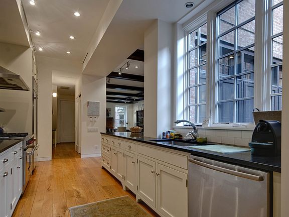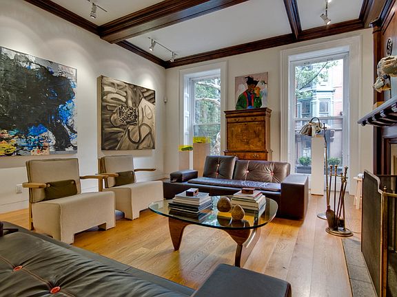 CONTRACT SIGNED Grand Parlor Garden Duplex on Remsen Half of a grand brownstone measures 26' wide plus extensions on two floors. This home contains the parlor and the garden levels plus the basement. The magnificent Flemish Bond Brick brownstone was gut renovated six years ago and won an award from the Brooklyn Heights Association for the new stoop. It is located half a block from the Promenade. Seamless amalgamation of classical and modern aesthetics produce a rare sense of elegance and leisure. The open parlor floor with 14' high ceilings feels like a stylish loft. The impressive grand space retains the essential period elements such as coffered ceilings, the fireplace with mahogany mantle and exquisite subtle moldings and plaster work. Light and sunshine are present through huge floor-to-ceiling windows on Remsen Street and a wall of French doors with a Juliet balcony overlooking the landscaped, south facing garden. Wide plank white oak floors and recessed lighting add warmth and intimacy. The entire floor has radiant heat and central air-conditioning. A gourmet chef's kitchen is positioned in the back area that leads to the extension. This sun filled location facilitates a flow of social intercourse to the dining area on one side and to the casual library/den area with a second fireplace on the other side. Kitchen features include a six-burner Wolf range, Sub Zero fridge, Bosch dishwasher, custom cabinetry and granite counters. The parlor floor contains a powder room and a large coat closet. The home's second entrance leads through an entry hall to three bedrooms and two full baths. The ceilings are 9' tall. In the large master bedroom suite there is another fireplace and more French doors to access the delighful private backyard. A walk-through closet is adjacent to the master bath with travertine floor tile and Duravit fixtures. The second large bedroom is in the front and it shares a full bath with the third bedoom that occupies the extension. There are large hallway closets and a laundry room with a sink and a gas dryer. Split A/C units cool this level. A terra cotta tiled floor mud room provides convenient access to and from the south facing back yard. The blue stone patio with BBQ for dining al fresco overlooks the lush garden oasis with a mature crab apple tree, birch tree, blue atlas cedar tree, rose bushes and assorted vegetables. The basement is exclusive and private