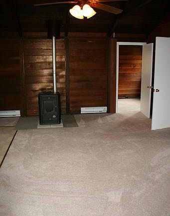 Home has just been remodeled. Log interior with vaulted ceilings, combination living, dining and kitchen combination with pellet stove. Two bedrooms. Kitchen has new range, new cabinety and countertops. New carpet and vinyl throughout. Screened porch. Front deck. situated on half acre wooded lot.Owner/agent