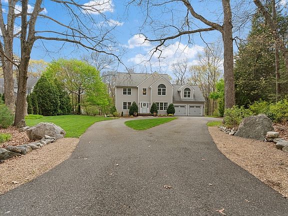 Lovely colonial style home sited on an oversized lot and set nicely off the road. The first-floor features and open concept kitchen with large granite island, gas range, charming bow window and plentiful cabinetry, a great room with wood burning fireplace, high ceilings and skylights and a desirable office. A light filled dining room and convenient laundry room finish off this level. The second-floor features four well-proportioned bedrooms including and ensuite primary with walk in closet, jacuzzi tub and large picture window. Future expansion potential in the unfinished basement space. Outside, the newly refurbished deck overlooks a sprawling backyard, complete with your very own volleyball court and woodland walking trail to Loker Elementary. Newer roof and garage doors and easy maintenance vinyl siding make this home move in ready. Quick access to Natick and Framingham shopping and ease of commuting from this convenient location along with top rated Wayland schools.