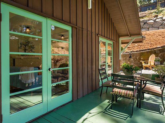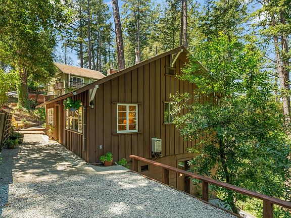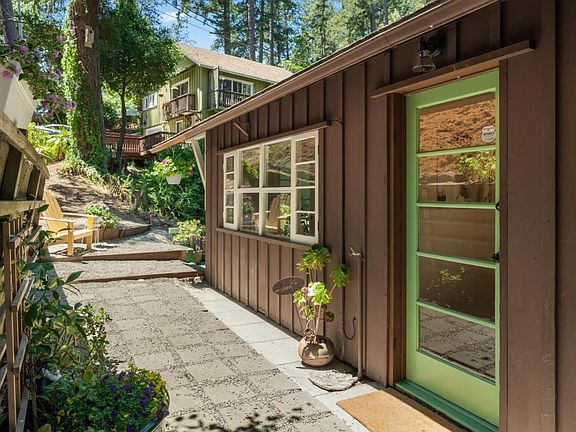 Enter a world of enchantment with this Storybook home nestled within a peaceful Mt. Hermon setting! This 3-bedroom, 2 bathroom charmer offers 1,152 square feet of living space, and rests on a spacious lot surrounded by majestic Douglas Fir trees that offer privacy and serenity. Step inside to find a fantastic floor plan filled with natural light pouring in through French doors and large windows. The country chic living room is perfect for entertaining guests while the large deck off of it is where you want to be for summer barbeques or enjoying a glass of wine after work. A lovely kitchen awaits you complete with everything you need to whip up delicious meals and an adorable breakfast nook for intimate dining. Two bedrooms downstairs have their own access plus there's a secondary bathroom with laundry facilities. You'll love the home's original fir flooring that's been refinished along with a storage structure outside to house your larger items. Don't miss out on this truly unique home