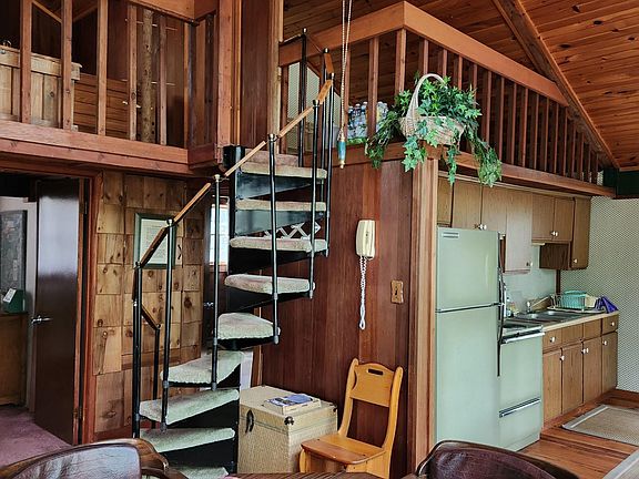 - Ceiling Fan(s), Combination Dining/Living, Entry Level Bedroom, Open Floorplan, Spiral Staircase, Dry Wall, Wood Walls, Wood Ceilings