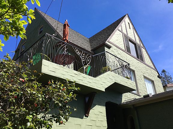 Spacious 2 bedroom home with Panoramic Views of SF Bay and Golden Gate Bridge on all levels; High ceilings, gas fireplace, large kitchen with bar, open floor plan. Separate Large Artist Studio with 3rd bedroom, lots of windows, natural light, high ceiling & separate entrance.
