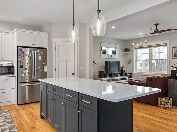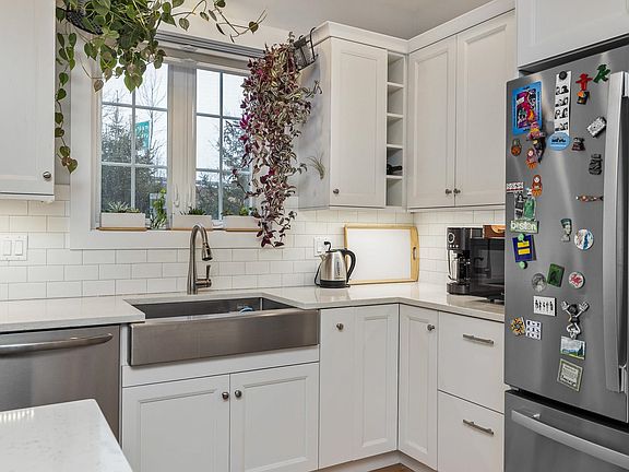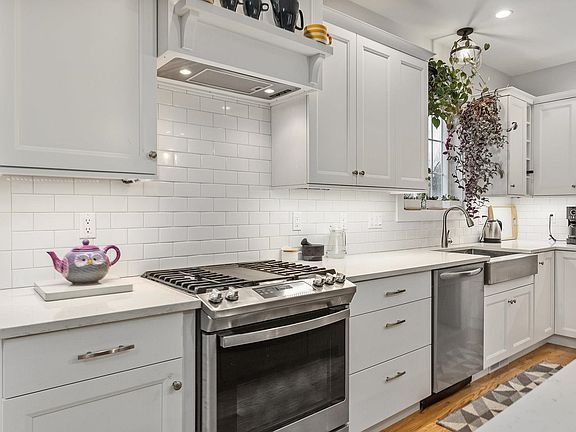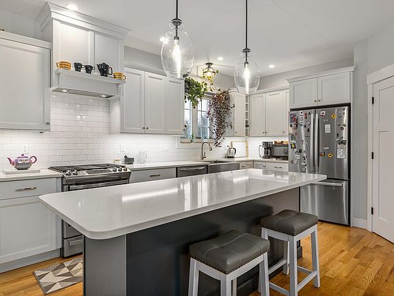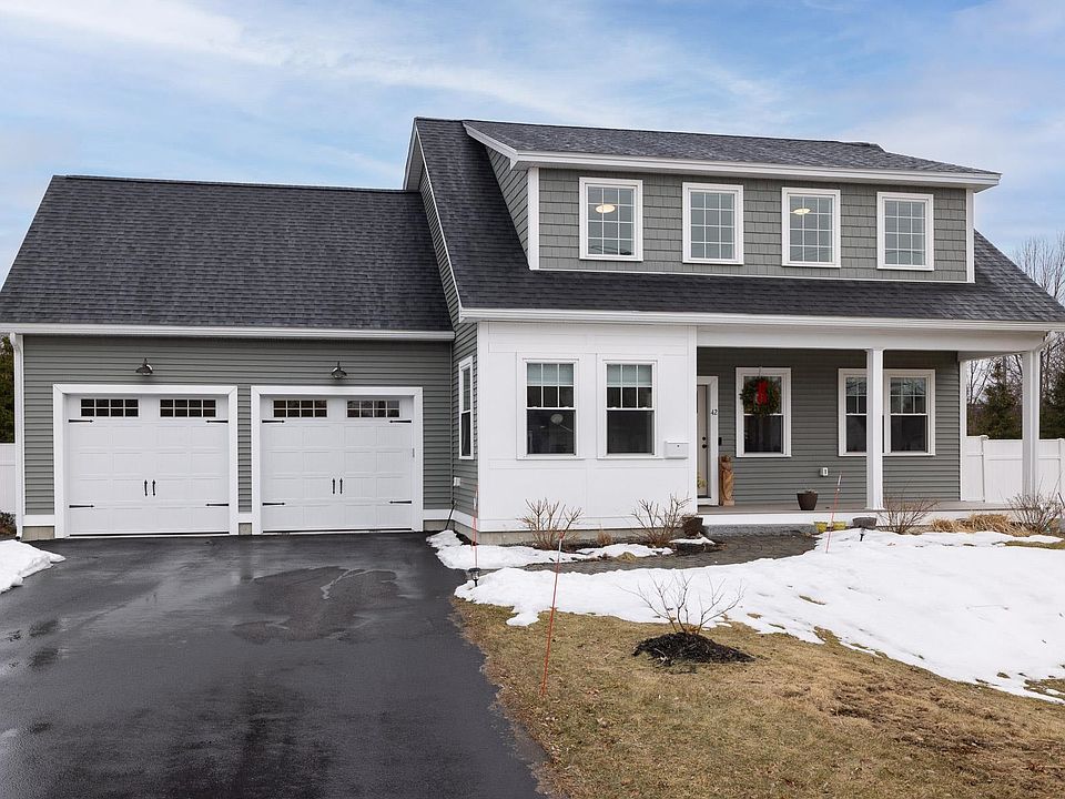 This warm and inviting Cape with farmer's porch was completed in 2020, and has been lovingly maintained and improved upon by the present owners. A bright and open first floor features hardwood floors and flows nicely from living to dining to kitchen. The living room offers a gas fireplace which is a perfect solution for our March weather! A wonderfully modern kitchen with quartz counters, white cabinets, stainless steel appliances and stainless steel sink. An enormous center island offers generous seating and storage. The dining area and double doors to the outside patio space is an easy way to connect to the fully fenced in back yard. Completing the first floor is an attractive, bright office as well as a half bath. Come and see this delightful home! On the second floor you will find a primary bedroom suite with walk in closet and 3/4 bath. There are two additional front facing bedrooms, as well as a common full bath and laundry area. On the second floor there is a terrific unfinished bonus room which when done will provide an additional bedroom, game room or whatever meets your needs. Lots of storage options exist in the full basement as well as the two car garage Easy access to all things Portsmouth and the seacoast as well as all major computing routes and the rail trail from your backyard. Sound wall construction on Route 95 due to begin in 2024. Come and see this delightful home!