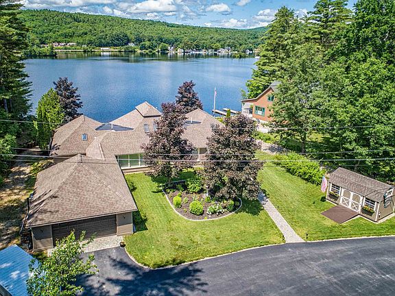 After parking your car in the attached two car garage, step into this beautifully landscaped 4716sf of open living space. Formal living room, bonus loft, open kitchen and family room, walkout basement to a large sandy area with 110ft of beautiful waterfront. This home has a water view from every room. While enjoying your private beach, step over to the hand-built Tiki Bar with ample seating which leads you to a fifty (50) ft dock for your boat. This home is an entertainer's dream with a upper 90' deck with 45' being covered for your outdoor dining pleasure. The lower deck has plenty of room for seating and enjoying the waterfront. And, the gorgeous sunsets with never disappoint.