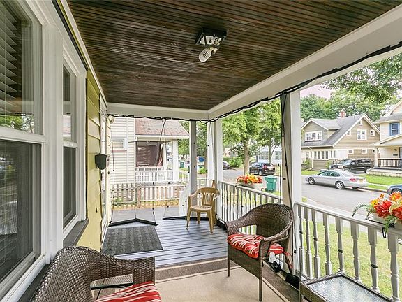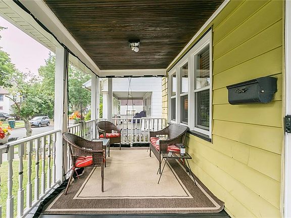 Charming & very well maintained colonial situated on quiet neighborhood street in the 19th Ward. Large open porch, perfect for these summer days! Convenient to entertainment, restaurants and shopping! Hop right on the 390 & 490! Spacious formal dining room just off the large living room! Featuring hardwood flooring throughout! Full & finished basement houses laundry and half bath! Perfect potential office space or rec-room with entrance off stairs! This home features a full and partially finished attic with ample storage space! The second floor houses 3 spacious bedrooms. Charming fully fenced yard with converted 1 car garage and patio. Additional updates include: Local security cameras installed & accessible by phone app! Hardwired RING doorbells, Newer glass block windows in basement, new windows & roof in 2012, newer furnace, central air installed in 2018!