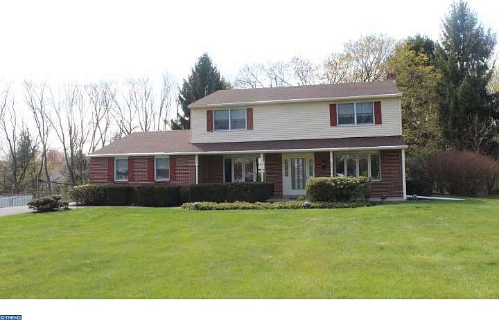 Spacious 4 bedroom, 2.5 bath center hall Colonial in Windmill Village. Front porch to foyer entry, formal living room & dining room with bay windows. Bright & cheery island eat-in kitchen with pantry...breakfast area with large bay window overlooking 20x40 Sylvan in-ground pool. Family room with stone gas fireplace & sliding glass door to patio. Additional 1st level rec room/bonus room with bar & laundry area. All 4 bedrooms are oversized. Master bedroom with hardwood floors, dressing area, walk-in closet & 2 additional closets...tiled master bath with walk-in shower. 3 additional bedrooms all with hardwood floors & spacious closets. Tiled hall bath with double sinks. 2 car side entry garage. Partial basement. New siding & Anderson windows throughout!