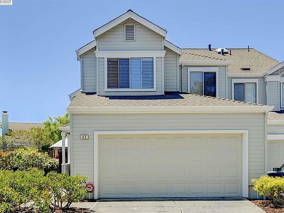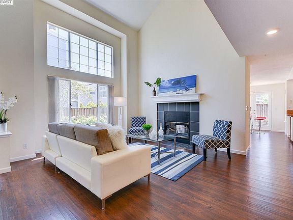 Sunny 3 bedroom Duet home with spacious backyard in Harbor Bay! High ceilings in living room and dining with potential loft additon over dining (subject to ciiy approval). Wood floors, 2-way fireplace and built-ins in family room facing backyard. Updated kitchen with Quartz countertops and ample cabinets. Spacious master bedroom with vaulted ceilings and large window. Great morning and afternoon sun. Spacious backyard with synthetic lawn, pavers and mature greeneries. Great Cul-de-sac location. Close to SF Ferry, park, Shoreline and top performing schools.