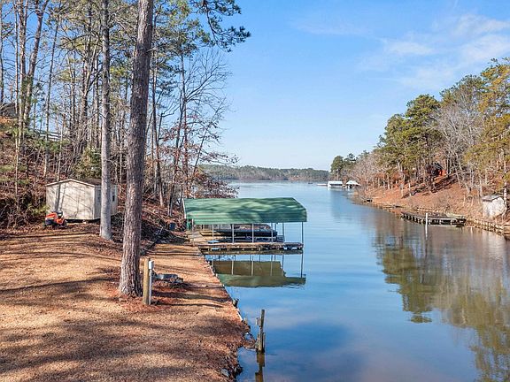 BACK ON MARKET DUE TO NO FAULT OF SELLER! This one has 2 Lots! 3 Bedroom 2 bath Clayton with Brick foundation -poured sidewalks-Covered boat dock with 15AMP/20AMP power at dock and home comes with a Generator! Full length Lakeside Deck with a huge 16 X 24 screened in portion. Open floor plan, Master suite on one end and 2 guests on the other- huge laundry room, and separate dining room! Island Kitchen-equipped with appliances, cook top, tons of cabinets and counter-space. Built in office "nook" outside the guest bedrooms. Double sink vanities in baths, walk in closets, linen closets and more. Additional Storage building- well manicured yard/landscaping. Water filter system. This one can be financed as it is on a permanent foundation. Boat Parking- RV or camper parking and More.