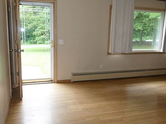 Welcome home! This 3 bedroom ranch style home with a one car garage is on a quiet country road in South Belchertown. The living room and bedrooms have hardwood flooring. The kitchen has vinyl flooring with lots of cabinet and storage space and opens to the sunroom on the back of the house with recessed lighting and sliders to the deck. The sunroom has windows facing north, south, and west so has lots of natural light and has a beautiful view of the private back yard. The large basement is great for additional storage or to add additional living area. The home has a newer heating system, central air, and will have a new roof, oil tank, electric panel and septic system installed before close! Easy to show.