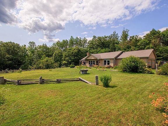 Lovely custom-built and well-maintained 3BR 2BA home in a beautiful, serene setting of fields, flowers, and forest with 2 Car garage, storage above, fiber internet available, primary bedroom suite with full bathroom, automatic stand-by whole-house Kohler generator, in-floor radiant heat, heat pump, fieldstone hearth and chimney for your wood or pellet stove, established flower gardens with granite embellishments, pool, screened porch with winter window panels, Amish Cabin, 3 fields, and forest land. This home is very comfortable to heat and cool with the 3-zone propane boiler and the heat pump plus dense-pack cellulose insulation; the attached garage is plumbed to heat as well if you wish. The home was built with extra-wide door openings and was designed to accommodate a second story in the future. The home is set well off the road for privacy; and for ultimate privacy, spend some time in the Amish Cabin tucked away in one of the fields!