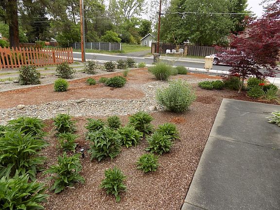 Welcome Home! The front entry summons you to come & sit for a few minutes on the fenced front porch & take in the front yard while decompressing. Youll enjoy the low maintenance beauty displaying a dry creek bed meandering across through the greenery all on a manual sprinkler system. Upon entry, youll encounter the delicious smells of dinner cooking & the large eat-in dining area already set for dinner. The front room beautiful with engineered wood floors & a sliding door leading to the covered back deck which beckons you to come & relax from a busy day. Cozy & comfortable best describes this well maintained home close to downtown. With 1440 sq ft 3 Bdrms & 2 ba sitting on .20 ac theres plenty of room for entertaining family & friends. The large back yard offers plenty of room for a garden and space for many activities. Two small sheds are included as well as a chicken coop & chickens if desired. This property is in a quiet neighborhood & is close to downtown. It also has an attached 2 car garage & off street parking.