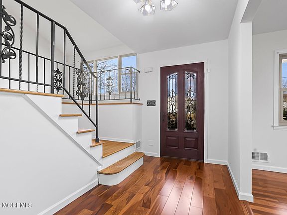 Great opportunity to live in the desirable Juniper Farms section of Freehold Township. This lovely 4 bedroom 2.5 bath home on an oversized lot on a quiet cul-de-sac has been nicely updated and freshly painted. Primary bedroom with attached full bath. Hardwood floors throughout. Eat-in kitchen with beautiful cabinetry and stainless steel appliances. Formal dining room. Family room with wood burning fireplace surrounded by built in shelves with sliders going out to huge backyard. Two story formal living with picture windows. Laundry room, partial basement, 2 car garage. Close to Jersey Shore, shopping, commuter highways, schools, parks, public transportation to NYC and municipal amenities.