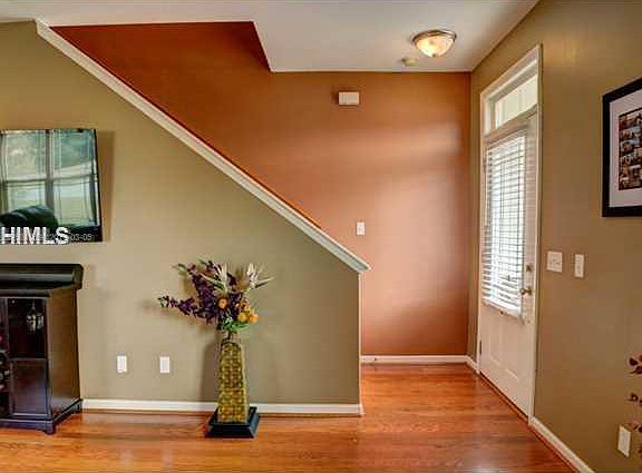 Wonderful 2 story home w/2047 sqft of living area in the Palmetto Pointe community. Features include hardwood on main level in the living room, eat-in kitchen, family room w/corner fireplace & powder room. Sliders open to a large patio, open side & rear yard. Upper level offers 3BRs & hall BA, master suite w/full BA, double sink, large open bonus area completes the 2nd level w/carpet. Walk to proposed clubhouse & pool in the process of being built. Convenient location to highways, shopping, schools, 30 minutes to Hilton Head Island or downtown Savannah, GA. Approx. 45 minutes to Beaufort.