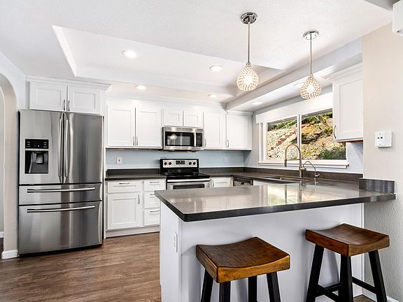 Quiet Cul-de-Sac Home behind Hidden Lakes Park! This beautifully upgraded 3 bedroom 2 bath home has lots of privacy with no homes behind it. New hardwood laminate flooring throughout main living areas and carpeted bedrooms. Renovated kitchen has blanco shaker cabinetry, new stainless steel appliances, and new quartz counter tops. Breakfast bar. Kitchen overlooks family room with fireplace. Newly painted inside and out. Side yards are fenced, and backyard has deck with pergola. RV parking to the side. Easy walk to the Hidden Lakes Park. Ready to move in. Bonus if close within 30 days. Disclosures and Inspection Reports are available.