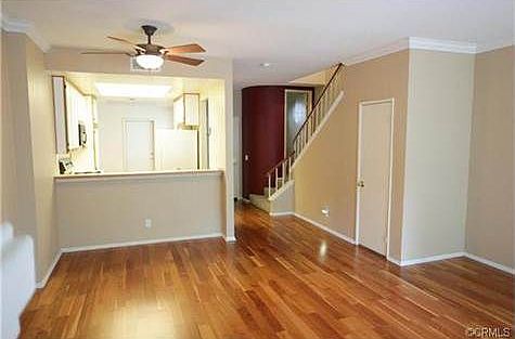 Just outside the gates of Coto sits this available 2 bedroom, 2.5 bath townhouse. The bedrooms are dual masters, both quite spacious. Enjoy the nice wood flooring and crown molding downstairs, and a peaceful back patio that overlooks a lush greenbelt. Past the kitchen with included refrigerator is the direct access 1 car garage (which also houses the included washer/dryer). An assigned parking space is also provided not far from the front door. Just across the street from shops, restaurants, 24 Hour Fitness, and Pavilions. Hurry, this one won't last long! (Sorry, no smoking and no cats allowed.)