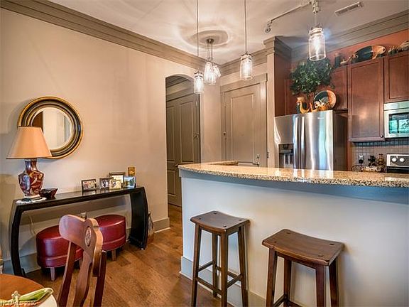 Top floor unit close to Elevator with long range mountain views! Open floor plan, kitchen w/stainless appliances incl newer range w/double oven and refrigerator. Huge Pantry. Wood floors throughout, 10 ft ceilings, Covered porch balcony, tile baths. Excellent closet space w/custom closet systems. Office nook w/built in desk. Rare unit with deeded Garage and huge 5x12 storage unit.Walk to 15 plex movie theater, fitness center, restaurants and shopping.