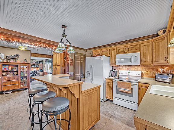 Calling all farm lovers! Situated on 5+ acres, this fantastic property features a home, barn with five stalls, grassy fenced pastures, mature fruit trees/grape arbors & more. The 3 bed/2 bath home boasts hardwood floors, an updated kitchen, cozy living room with propane fireplace, reading nook & a main level master suite. You'll love relaxing on the covered back porch & watching the breathtaking sunsets. Your animals will be in paradise with room to roam safely. Some of the many conveniences include walk-free runs, frost-free hydrants, heated buckets, a feed room & tack room, heated indoor hose, & two run-in sheds for horses. There is a bunkhouse with a wood burner attached to the barn. So much to offer in this hard-to-find horse haven!