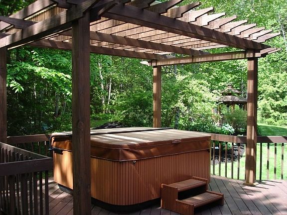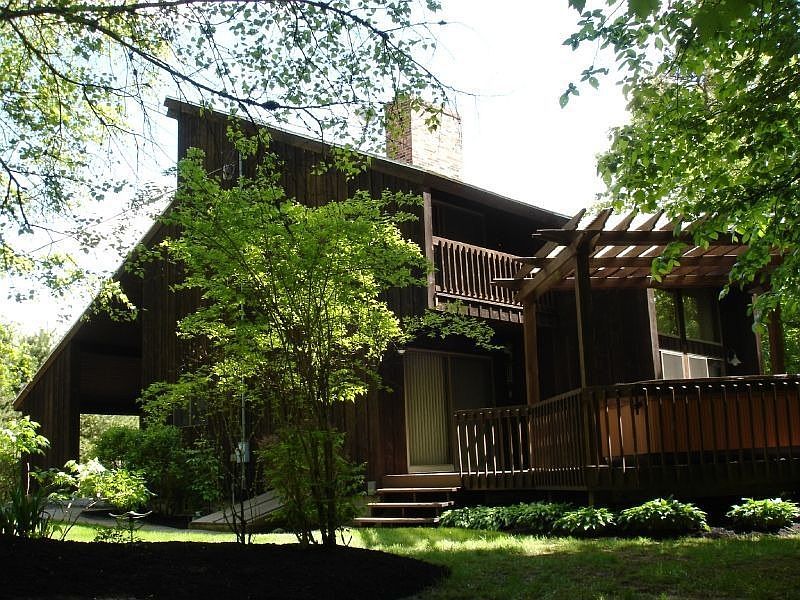 Looking for privacy? Look no further! Secluded contemporary style home on 15 +/- acres w/babbling brooks. Offers cathedral ceilings, 2nd floor balconies, fireplace, game room w/bar, rear deck, hot tub with a pergola above, public water & relaxing gazebo.