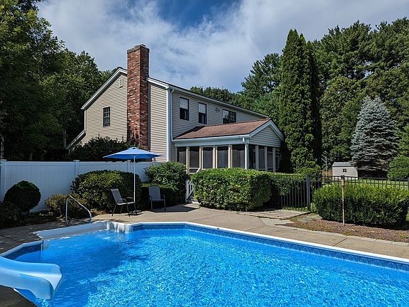 Situated on a .71 acre lot surrounded by lush green grass, this 4 Bedroom, 2.5 Bathroom Colonial features an open floor plan on the first floor with Living Room/Family Room w/ Fireplace open to the Kitchen and Dining Area, formal Dining Room, and laundry on the first floor. Upstairs are 4 Bedrooms including a Main Bedroom w/ Walk-In Closet and Full Bathroom w/ Tiled Shower. The spacious rear screened porch is a great place to relax on Summer Days overlooking the inground pool -- all with views of UMASS Amherst and surrounded by open farmland. Full Basement, Attached 2-Car Garage, Central A/C, Irrigation System w/ Private Well. Convenient Location in a great neighborhood! **OPEN HOUSE Saturday 10/15 11AM-1PM, or schedule Showing prior**