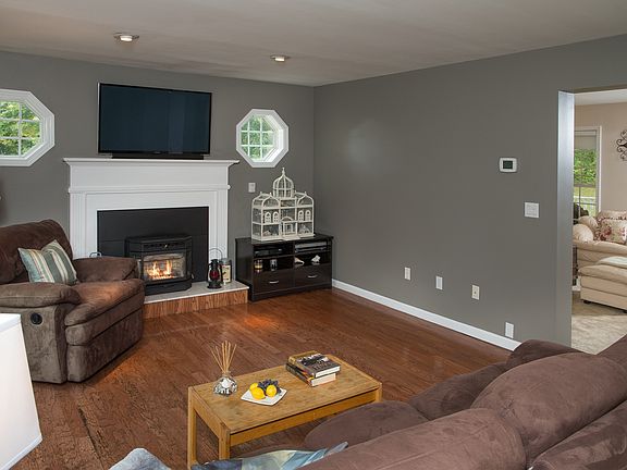 Attractive Colonial located in a quiet area on 1 acre, w/seasonal views of the hills beyond. Stylishly updated, this 4BR home offers a lrge fam. rm w/HW flrs, fplc & sgd to the deck. The EIK has plenty of storage, a DA w/ a bay window & rm for entertaining! The DR & LR have a nice flow w/the rest of the downstairs. Upstairs, a Mst Ste w/wic, mst. bath w/Jacuzzi. 3 addit BR's w/a hall bath complete the upstairs. The W/O bsmt has plumbing roughed in for a future bathroom. The 2 car garage is attached. Easy access to the trains, shops & schools.