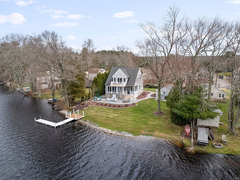 Secluded & Luxurious Retreat - Your Home Away from Home! Indulge in the ultimate haven for fishing enthusiasts at the tranquil shores of Glasgo Pond and Doaneville Pond, offering diverse fishing opportunities and water activities. This property is a perfect escape for lake life lovers, showcasing a private dock, a beach, and a beautifully renovated home, ideal for those who appreciate nature. Relax under the awning or near the fire pit on the stunning patio after a day of water adventures. The garden oasis creates a pristine outdoor living area with a complete outdoor bathroom. This residence seamlessly blends traditional charm with contemporary conveniences, featuring hickory hardwood floors, a gourmet kitchen w/new appliances and energy-efficient elements, and breathtaking waterfront vistas through custom thermo-pane windows. Added benefits include a top-of-the-line energy-efficient furnace, water heater, updated lighting, a security system, generous parking on a new spacious driveway, and more. The garage has been fully renovated with new siding, insulation, and ventilation, topped with a beautiful fence for added privacy. Enjoy a luxurious lifestyle with convenient access to casinos and Rhode Island beaches, catering to permanent residents, vacationers, or potential Airbnb hosts. Please take a minute to view the video of the property by clicking on the the movie reel icon. The basement area offers the potential for additional living space. The opportunities are limitless in this remarkable property where all you need to do is move in and relish the experience.