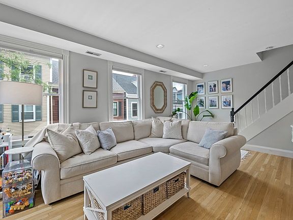 Situated on gas-lit Soley St. off Monument Sq., this fabulous, sun-filled duplex boasts 2 beds, 1.5 baths, and 1,235 sq ft of living space. Enjoy the newly constructed, large roof deck with stunning views of the Bunker Hill Monument and Boston skyline. The bright, open floor plan showcases a spacious living room with custom built-ins & wood-burning fireplace. The dining room seamlessly connects to the updated kitchen featuring induction stovetop, custom pantry, new countertop, & gray subway tile backsplash. Upstairs, find 2 roomy bedrooms with ample closet space and lovely wide pine flooring. The updated full bath offers a double vanity and convenient laundry. Upgrades include a new HVAC system (2019), rubber roof & expanded exclusive roof deck (2020). With easy access to public transport, this vibrant community is renowned for its famous Bunker Hill Day Parade & Halloween celebrations. Located near restaurants & parks.