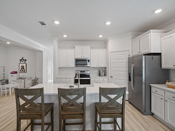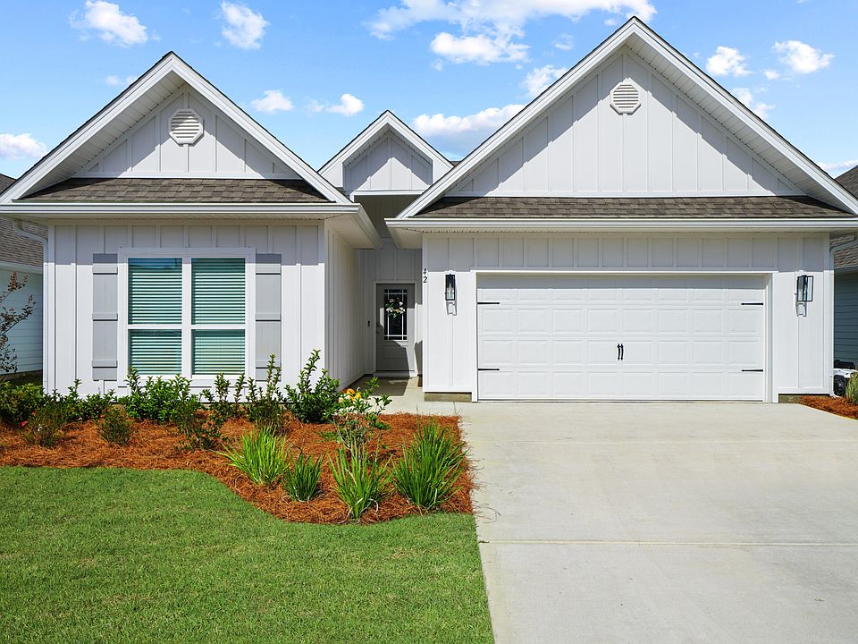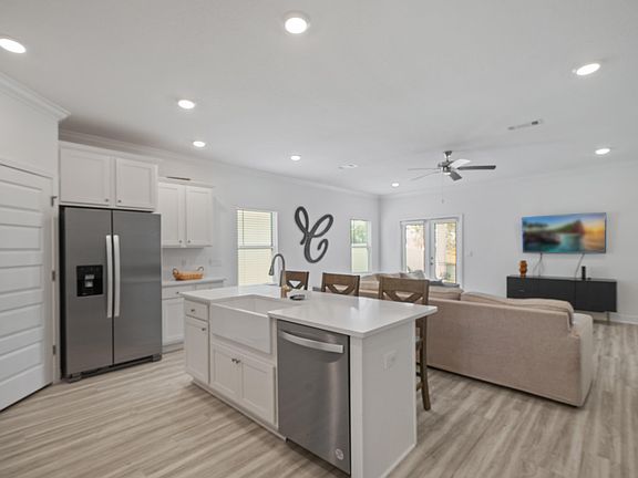 Experience the magic of the Emerald Coast in this gorgeous, never rented 2023 construction that is minutes from 30A beaches, schools, restaurants, shopping, golf, and more! Walton's Landing is a quiet community that has walking paths, ponds, and a beautiful community pool. This single-level, 4-bedroom + office ''Kennedy'' floor plan has EVP flooring throughout, 3 full bathrooms, and is ideally located on a prime lot near the pool, making it the perfect full-time residence or short-term rental! The kitchen features beautiful quartz countertops, farmhouse sink, stainless steel appliances, spacious pantry, designer lighting, and painted cabinetry. Enjoy pond views on the covered back porch or spacious fenced-in yard. The large primary bedroom has an en suite with double vanity with quartz countertops, separate shower, garden tub, and big walk-in closet. Guest Bedroom 2 and Guest Bedroom 3 are nice-sized and there is as full bathroom in between them with quartz countertops and a shower/tub combination. Enjoy the convenience of a dedicated laundry room near the bedrooms! The office is located just off the entry near Bedroom 4 and there is a second full bathroom with quartz countertops, painted cabinetry, and a shower/tub combination. The office makes the perfect 5th bedroom, playroom, or bunk room! Additional features include water filtration system, smart home technology, doorbell camera, digital thermostat, keypad lock, and two-car garage. The exterior features a full irrigation system, spacious fenced-in yard, and covered back porch! The exterior also has 4-sided Hardie construction, reinforced concrete foundation, weather resistance house wrap barrier, and a 30-year dimensional shingle roof. This amazing neighborhood enjoys golf cart access to 30A's popular Dune Allen public beach access and is also close to nature trails, Cessna Landing's public boat launch, and Topsail Hill Preserve State Park. Schedule a showing today!
