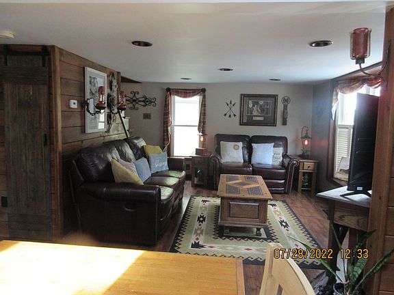 This adorable New Englander is move in ready! Enter through the beautiful craftsman front door into the dining room/living room area that boasts a bay window and skylights for lots of natural light. Then walk into the updated kitchen that includes gorgeous granite counter tops, stainless steel appliances, deep stainless sink and lots of cabinets. The full bathroom has a jetted tub and pedestal sink. Upstairs are 2 good sized bedrooms. Vinyl plank flooring throughout. Basement has a finished bonus room that includes laundry area. Storage area and workshop area as well. Walk out basement to large private back yard that goes right to the Ela River. Showings begin at OPEN HOUSE on Saturday, August 6th 12:00-1:30