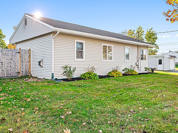 This delightful renovated ranch home is close to Portsmouth and everything the Seacoast has to offer. The property includes a two-bedroom one bath home that has been tastefully renovated. This single floor living opens into a tiled mud room with knotty pine accents, washing machine/dryer and storage. From the mud room there is access to a large fenced in back yard perfect for parties in the summer. Entering the main part of the home there is an open concept kitchen, dining and living room. The kitchen has all new stainless-steel appliances and portable island. The gas fireplace in the living room keeps the home nice and toasty. The renovation in 2016 took the home down to the studs and added foam insulation, new windows, flooring and bathroom. The property includes a detached one car garage and a two-story barn.