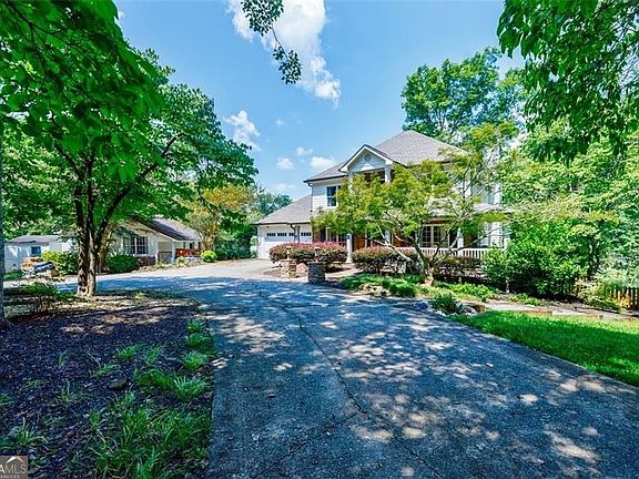 Stunning Cul-de-sac Estate with Dual Homes on 3.5 Acres of Serenity Welcome to this exceptional private retreat featuring two beautifully appointed homes totaling 8 bedrooms, 6 full baths, and 1 half bath. The main house offers 5 spacious bedrooms, 3 full baths, and a half bath. Enjoy hardwood floors, an updated kitchen with a walk-in pantry, a cozy den, and a living room with breathtaking lake views. The finished basement includes a large living area, game room, flex space, an additional bedroom, and full bath. Upstairs, the owner's suite showcases a generous walk-in closet and luxurious bath with a walk-in shower. Two additional bedrooms and a full bath-one bedroom even includes a coffee bar! The guest house is perfect for visitors or rental income, featuring 3 bedrooms, 2 full baths, a well-equipped kitchen with breakfast nook, and an open great room. Enjoy tranquil views from the inviting front porch, plus a separate parking area for added convenience. Outdoor Living at Its Finest?Step outside to your personal paradise with: A picturesque in-ground pool overlooking the shared private lake Multiple decks perfect for lounging and lakefront relaxation A spacious covered pavilion with a hot tub and cozy fire pit area An outdoor kitchen with adjacent half bath/changing room for poolside convenience Landscaped grounds and garden-ready space The property includes a boat dock, two storage buildings, and is located near the renowned LakePoint Sports Complex, making it ideal for active lifestyles. This is not just a home-it's an experience.