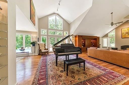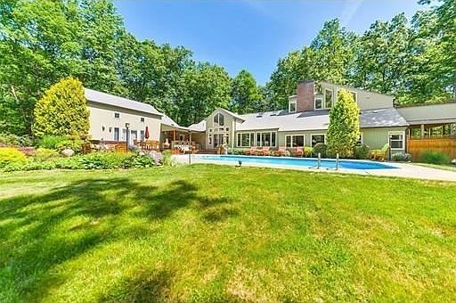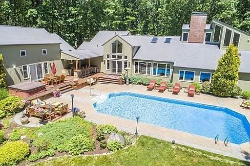 Beautiful 5 bed 3 full 2 half bath contemporary home w/ breathtaking back yard oasis. The impressive great room has grand ceilings & windows w/ an abundance of natural light w/ front to back views of the crystal blue in-ground salt water pool outside. This thoughtfully designed home w/ an open concept floor plan & easy indoor/outdoor living is an entertainers dream! Attention to detail through out w/ custom cabinetry, shelving, surround sound, dual sided fireplace, kitchen w/ floating island, bar & master suite w/ 360 degree glass spa shower on a private master balcony! In addition there is an 1100 sqft bonus space w/ optional separate entrance! All sitting on 14 acres of private land, surrounded by trails, nature, wild life reserves & yet still just a short drive to downtown Northampton, major highways & all the local amenities. Please see attached feature sheets for more details. Schedule a private showing today to fully experience the features of this Northampton gem!