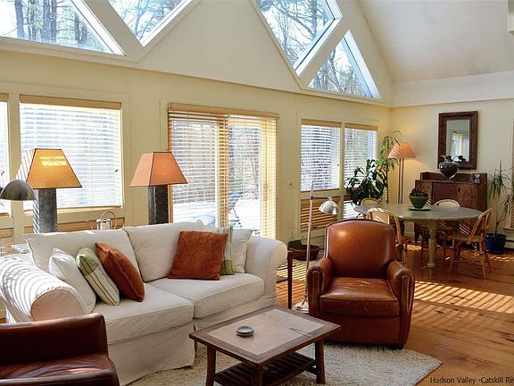 Exquisite 3 bedroom, 2 bath cape in private setting on 8 acres close to Minnewaska, Mohonk & Catskills skiing and hiking - a four season destination and a superb place to live. Enjoy the bucolic Rondout Valley mountain and meadow views from the open deck and bright great room with stunning stone fireplace. Tastefully furnished 1,740 sq ft home with extraordinary window feature and contemporary detail. Relax in the country with the convenience of central air, a well-equipped kitchen, and the great outdoors at your door step. Second floor open office space with mountain views and a wireless connection to the world. Close to Arrowood Farms, Westwind Orchards, and Saunderskill and Kelders Farms.