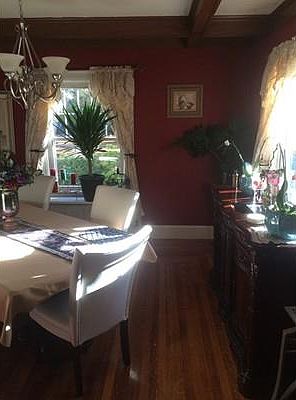 Hola! Enter into the foyer to view the grand living room with fireplace and french doors to large sunroom and back deck. Formal dinning room with rich wood ceiling beams. Eat-in kitchen with double sink and bar shelves. Butlers pantry. Granite and wood floors thru-out. Second floor offers hallway with great built-in drawers. Three bedrooms including master suite with full bathroom and private balcony. Plus another full bath and laundry room. Third floor two bedrooms cedar closet built-ins and full bath. Basement with a couple of rooms and lots of possibilities. Circuit breakers and gas heat. Nice size yard with two car garage.