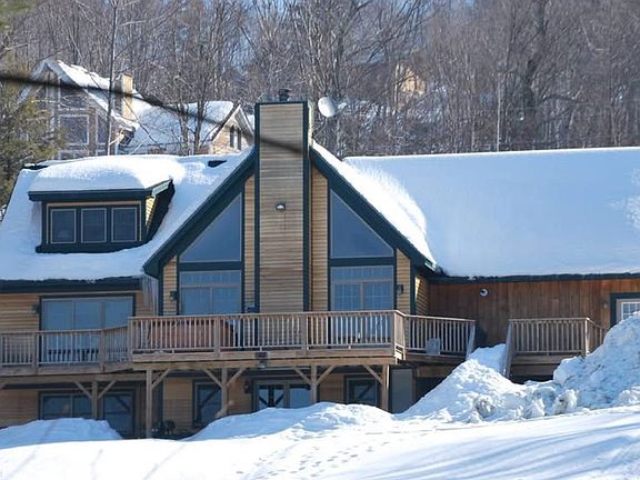 Tucked into the serene hills of Dover, Vermont, this custom crafted mountain home offers the ideal blend of rustic charm and modern comfort just minutes from Mount Snow and The Hermitage Club. Set on a private lot with winter views of both ski mountains, this 3-bedroom(+bonus bedroom), 4.5-bath home features an open-concept layout with soaring cathedral ceilings, exposed beams, and a stunning floor-to-ceiling stone fireplace. The spacious kitchen is equipped with high-end Viking appliances, granite counters, and rich wood cabinetry, making it a warm and welcoming space for entertaining. The main level includes a generous primary suite, while two more en-suite bedrooms upstairs provide comfort and privacy for guests. A finished walk-out lower level adds flexibility with a bonus bedroom, additional full bath, and room for a media space or game room. Enjoy the peace of Vermont from the expansive deck or the covered front porch, all surrounded by beautifully landscaped grounds and bordered by forest for added seclusion.The property also has direct Snowmobile access to The VAST Trail System and a private Snowshoeing or HikingTrail. An attached oversized two-car garage completes this mountain retreat.