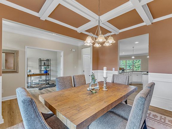 Welcome to your beautifully designed 1.5-story retreat, nestled on a spacious 0.31-acre lot that backs up to serene wooded views. This charming home is move-in ready, featuring fresh paint, brand-new carpet, and newer luxury vinyl plank flooring in the main living areas. The oversized kitchen is truly a standout, boasting a generous peninsula with seating for 6+ and an abundance of countertop and cabinet space, complemented by a convenient center island and a new dishwasher—perfect for both everyday living and entertaining guests. The open floor plan seamlessly connects the kitchen to a private office, formal dining room, and a large laundry room with a utility sink and drop zone for added convenience. Living here feels effortless, with the primary bedroom and ensuite located on the main floor alongside two additional spacious bedrooms, each with large walk-in closets. All bathrooms are adorned with stylish tile flooring and elegant surrounds in the showers and tubs, ensuring both functionality and comfort. Venture upstairs to find a versatile loft area, two additional bedrooms, and a third full bath—ideal for guests or a growing family. Enjoy your morning coffee or unwind in the evening on the expansive front porch or the covered back deck, which is just waiting to be screened in for added enjoyment. With a back patio and two-car garage, this home offers ample space for your lifestyle needs. Situated in the highly sought-after Winston Pointe Pool Community, you'll enjoy convenient access to White Oak Shopping Center, grocery stores, parks, schools, and major highways. Plus, with the added benefit of being in Clayton ETJ, you'll enjoy the perks of no city taxes! As an added bonus, the refrigerator conveys with an acceptable offer, making this home ready for you to move right in. Don't miss your chance to own this exceptional property—schedule your tour today!