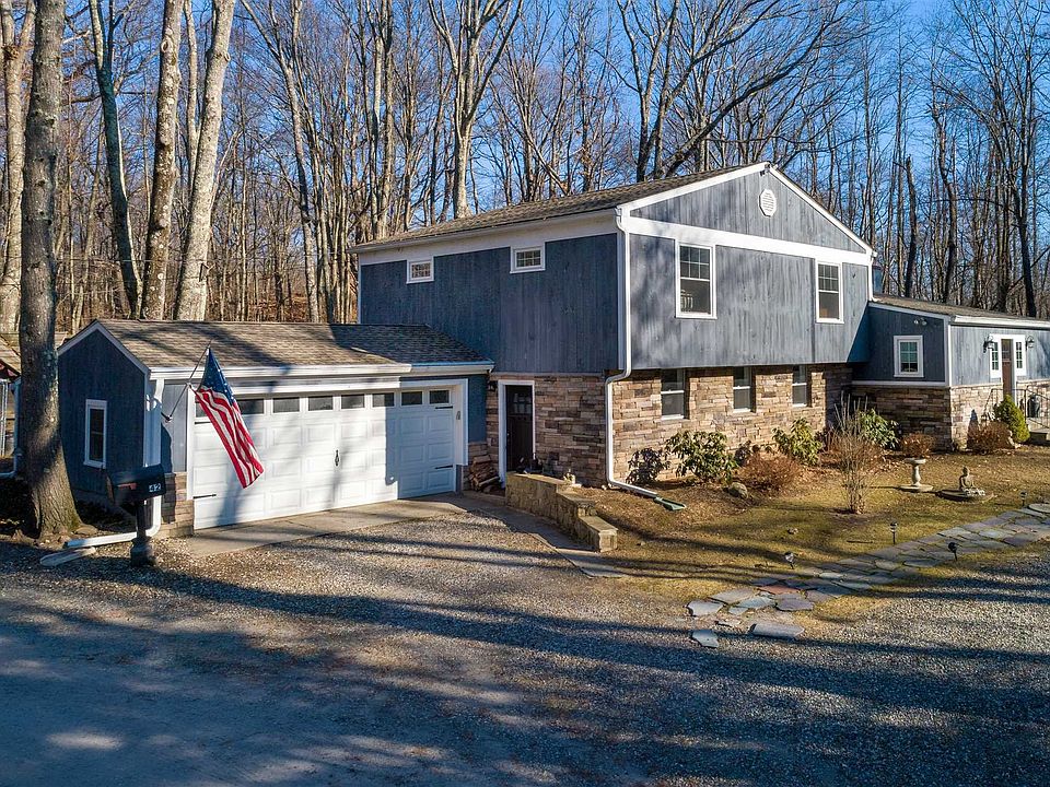 The ideal country retreat on a private country lane on Quaker Hill will surely delight those looking for the perfectly sized weekend getaway or full time home. The recently renovated 2,220 SF home set on 3.24 acres exudes charm inside and out. The 3 bedroom, 3 bath split level features an open floor plan on the first level. The adjoined living room, dining room and kitchen boast a charming stone fireplace, center island kitchen, wide board flooring, craftsman doors and 2 sets of sliding glass doors to the outdoors. Steps up lead to the master bedroom and master bath, two additional bedrooms and a second full bath. Steps down lead to 600 finished SF with a spacious family room with side entry, full bath and additional laundry/storage room: all the makings of an ideal in-law or accessory apartment. The idyllic setting surrounds the home and includes both sides of sinuous Sumner Lane, which begins from Quaker Lake Road. Ideal for rejuvenating walks past picturesque lakes and to the nearby Pawling Nature Reserve and Appalachian Trail. Only 9 homes share this special setting on Sumner Lane. It's country living just minutes to the quaint Village of Pawling, with its own Metro North station, antique stores, boutiques, restaurants, cultural attractions and numerous outdoor activities.