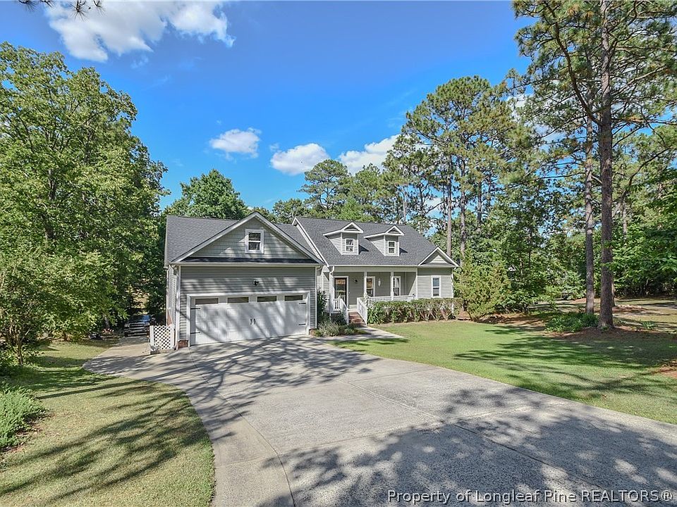 This Carolina Lakes ranch w/ finished walkout basement situated on cul-de-sac golf course lot! Featuring 4 bed/4full baths, possible 5th bedroom. Open floor plan provides a seamless flow from the family room to dining area & into the kitchen. Four season room w/ golf course views & access to upper deck perfect for indoor/outdoor entertaining. On the main level, you will also find the primary bedroom w/ walk in closet and a spa-like bathroom, featuring dual vanities, garden tub, walk-in shower & water closet, 2 more bdrms and office w/built ins & laundry.10 Ft ceilings in walkout basement w/ add bdrm, bath & multi-purpose rm. Outdoor living space & 2 large decks for entertainment. Upper Deck has built in drainage system. 22Kw Home Generator w/auto transfer switch + three 120 Gal propane tanks. Roof less than year old. 24-hour guarded gate, 7 lakes, marina, volleyball, club house & community pool, playground, tennis/basketball courts, walking trails & summer time farmers markets & more!