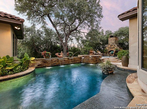 Beautiful custom home situated in cul-de-sac on 1.4 acres w/superb outdoor living spaces! Upscale finishes, hdwd/tumbled marble floors, exposed beams, ceiling treatments & walls of seamless glass windows. Great rm w/stone fireplace, Chef's kit w/stainless steel appliances, gas cooking & double ovens, dual eating areas, butler's pantry & wine bar. Split master ste w/spa bath. Resort style al fresco oasis w/grand stone fireplace, pool, spa, outdoor kit, covered patios, firepit & beautiful landscaping.