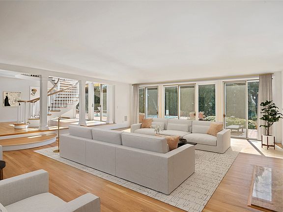 Set Back Nearly 300' From Waters Edge Sits this 5100' Sqft Home in Bellport Village with 50' of Private Beach Front On 1.1 Acres. Entering the Light Filled House from a Long Landscaped Driveway, the Main Level Boasts a Grand Formal Entrance Leading to the Formal Living Room & Dining Room Flanked with Sliding Doors to the Pool Patio & Gas Fireplaces. Adjacent the Living Room is a Screened Porch with Direct Bay Views. A Picture-Perfect Setting for Entertaining, the House Offers Well-Proportioned Rooms and Gracious Open Floor Plan. The 2nd Floor has a Master Bedroom Ensuite w/ Private Access to a Balcony Overlooking the Bay, 2 Walk-In Closets, Gas Fireplace & Marble Bathroom. Pass Through 2nd Level Den w/ Cathedral Ceilings to the Guest Bedrooms Each with Access to a Private Terrace Leading to Separate Guest Quarters w/ Kitchenette & Full Bathroom. Expansive Outdoor Brick Patio Surrounds 14x28 In-Ground Htd Pool. Privacy & Serenity in Every Corner of this Elegant Property!