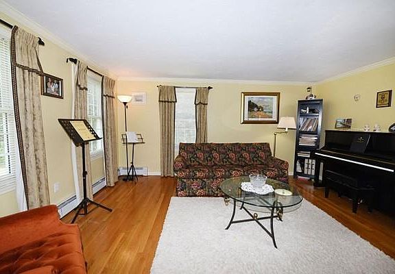 Nestled back from the road , set in a backdrop of greenery, awaits a large welcoming Colonial Home in highly desirable area! Built for family style living, custom kitchen cabinetry, ei kitchen with island, sliders to the deck! Enter into formal dining rm for family gatherings as well as entertaining in your fireplaced living room , built in shelves & cathedral ceiling ! There is a den currently used as a music room. The large Foyer makes a great entrance to 1st floor as well as the stairway to 2nd fl bedroom area. This includes Master Bedroom, with walk in closet & 3 additional bedrooms, 2 full baths, double linen closet and pull down ladder to access to storage in the attic. The double garage under brings you to the basement, which includes storage, utility closet, full laundry room, and walk out finished basement! Plenty of parking, & yard for plantings & outdoor activities! Bring your ideas to renew & update value ! First showing is Open House , Sat Aug 3rd, 1:00-3:00 pm