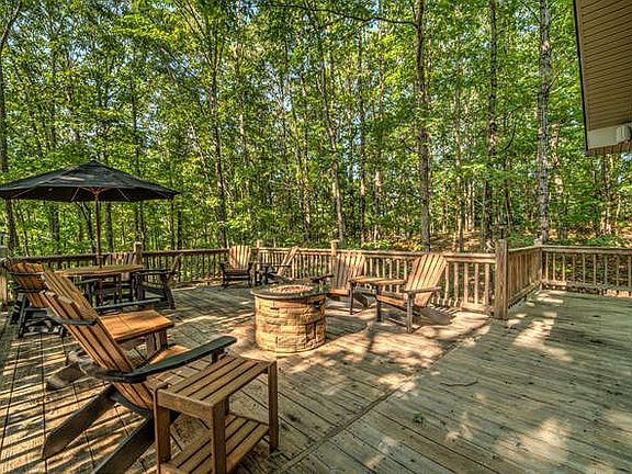 Dance under the stars on large deck of this 3/3 'tree house' on 2.23 acres plus 1.8 acres across road to expand your privacy. Enjoy coffee on the front porch watching the sun rise. Catch the sunset from rear covered deck w/long range mountain VIEW. Take a daily walk/jog on wrap-around deck. Gather & entertain on the decks & watch folks gravitate toward the firepit or around the bbq. Engage in pool, ping-pong, shuffle-board or darts in lower level family room. Draw close in cooler temps to the stone FP in main level living area. Snuggle contentedly in any of the bedrooms for that full night of rest that mountain air invokes. If you are renewed by nature, this is the home for you!