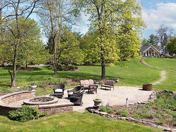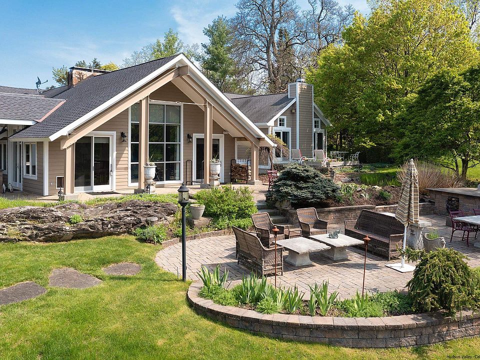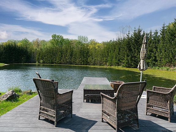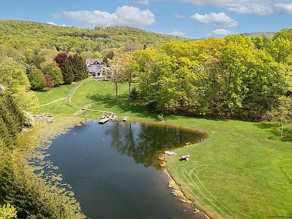 Welcome to The Delamater House, where old-world charm meets contemporary elegance in picturesque Ulster Park. This remarkable property seamlessly blends a historic stone home built in 1828 with a stunning modern addition, offering breathtaking views of the sparkling pond and meticulously landscaped grounds. Set on nearly 10 acres of rolling meadows, stone walls, streams, and a waterfall flowing into the pond, this private sanctuary also includes a highly productive organic farm. Pass through the impressive stone wall and pillars, beyond the separate two-car garage, and enter through the double-height portico, where the essence of this extraordinary home begins to unfold. The vaulted and beamed living room provides an awe-inspiring vista of the surrounding scenery, enhanced by a wall of windows, a wood-burning fireplace, and recessed lighting. French door sliders beckon you to one of the many stone patios, creating a seamless indoor-outdoor living experience. Another living area showcases the original stone construction and features a charming stone fireplace, adding to the home's historic allure. In total, this remarkable property has four fireplaces! The gourmet kitchen is a chef’s dream, with custom wood cabinets and undercabinet lighting, a Viking 6-burner stove with a char grill and pot filler, double ovens, a Viking bread warmer, a Sub-Zero refrigerator, and three sinks. Vaulted ceilings with skylights fill the space with natural light, while the granite counters and 24 x 24 slate floor tiles exude warmth and elegance. A separate bar area with its own sink and icemaker adds to the entertainment value of this exceptional kitchen. The adjacent formal dining room features a fireplace, exposed beams, wideboard floors, and deep window wells that showcase the depth of the original stone house walls. Ascending a short flight of stairs, you'll discover the expansive primary suite, a true sanctuary offering a private sitting area with a gas fireplace that leads out to its own stone patio, two walk-in closets fitted with custom California closet cabinetry, and an ensuite bath with a soaking tub, glass shower, and a separate bidet room. The lower level guest bedroom is thoughtfully designed, featuring a unique combination Murphy bed and desk, and its own ensuite bath. Upstairs, the second guest suite is complemented by vaulted ceilings, an ensuite bath, and a cozy sitting room. The outdoor spaces of The Delamater House are equally impressive, with stone patios, a hot tub, an outdoor kitchen, and multiple seating areas that invite relaxation and entertaining. The mature and elegant landscaping enhances every corner of the property, accentuating the retaining walls and natural rock outcroppings. Enjoy captivating sunsets from the western-facing vantage point. Follow the stone path down the gentle slope to your own private swimming pond, with additional seating areas near the enchanting waterfall. Tucked away on a corner of the property lies a certified organic compact farm, offering an opportunity to indulge your passion for fresh produce and flowers. Ample space accommodates a variety of heirloom vegetables, including fennel, radicchio, and romaine lettuce, as well as a variety of heirloom and cherry tomatoes in the Tomato House. The farm also boasts blueberry, red raspberry, blackberry, and black raspberry bushes, along with currants, gooseberries, and jostaberries. The farm also boasts a chicken coop, a large pergola, and a giant commissioned sculpture by Glen Mayo which completes this agricultural haven. This amazing home and property can fulfill both your spirit and your stomach! The systems have been thoughtfully updated, including central air and splits, Nest thermostats, built-in stereo speakers, two air handlers with filters, and a generator, ensuring modern comfort and convenience. The location is ideal, offering both privacy and easy access to cultural attractions, dining and outdoor pursuits in the historic Hudson Valley