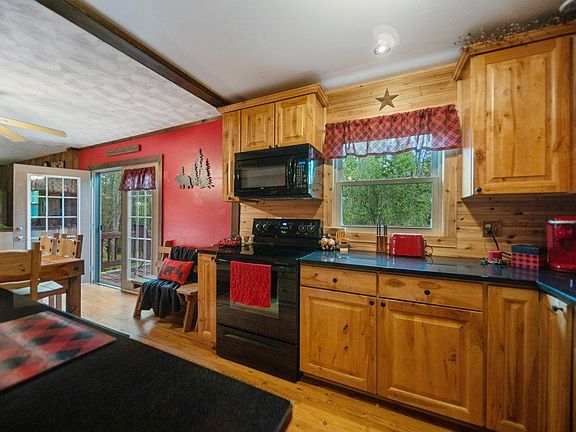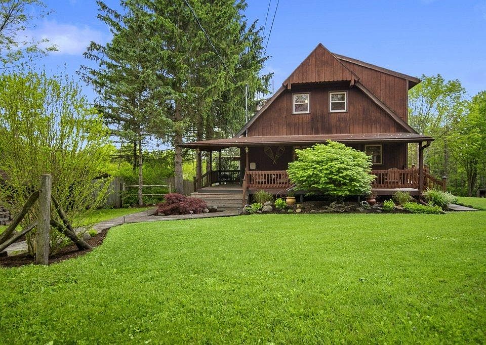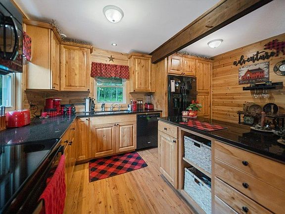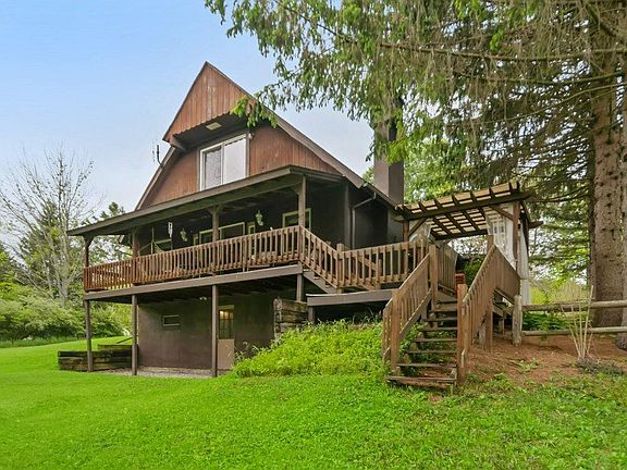 This sweet rustic styled home is tucked nicely on a park-like mostly wooded lot complete with a large pond. This home offers an open dining/kitchen/living area. The updated kitchen has birch cabinetry, an island and has tons of counter space sure to make meal prep a true treat. Your living room has fantastic built in bookshelves, a woodstove and a walkout deck. Whether you are sipping your morning coffee or enjoying your evening BBQ on the back deck, you will enjoy watching all the wildlife/critters. After a long day, retreat to upstairs where you will discover 3 bedrooms and a spa like bath perfect for relaxation. The lower lever offers a family room, separate storage area, laundry hooks ups and a convenient walkout to the beautiful backyard. The half acre pond is perfect for swimming and/or fishing. Come explore this 7.5 acre property that has a true retreat feel from the moment you pull in the drive!